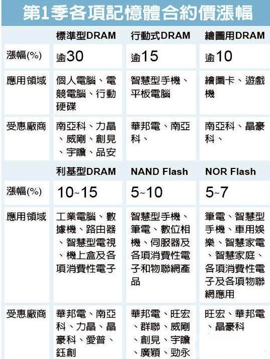 今年存儲(chǔ)芯片缺貨效應(yīng)持續(xù)擴(kuò)大,繼DRAM、儲(chǔ)存型快閃存儲(chǔ)(NAND Flash)在淡季飆出歷年最大漲幅后,編碼型快閃存儲(chǔ)(NOR Flash)也在睽違四年多來(lái)初次提價(jià),第一季度調(diào)漲5~7%不等,下季漲幅更大,估計(jì)漲幅逾10%?!?br />
