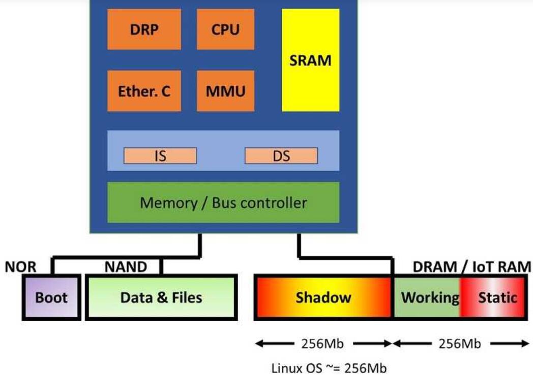 我們來看一下MCU設(shè)計(jì)中的情況,其中IoT RAM明顯比外部DRAM具有優(yōu)勢(shì)。在下面的通用MCU圖中,工作/靜態(tài)存儲(chǔ)器部分越來越需要擴(kuò)展。在整個(gè)工作空間中使用DRAM會(huì)增加系統(tǒng)的功耗,并需要集成刷新控制器。
