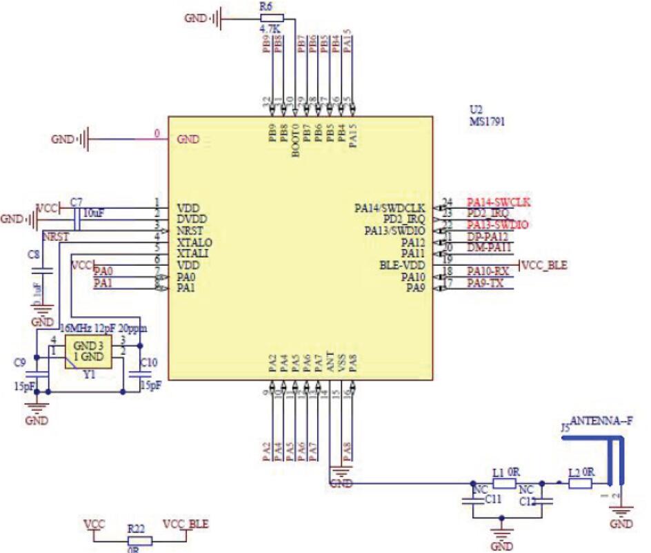 上海巨微MS1791是單模超低功耗藍牙芯片,射頻采用的是2.4GHzISM頻段的頻率,2MHz信道間隔,符合藍牙核心規(guī)范4.1。MS1791使用高性能的ARM Cortex-M0為內(nèi)核的32位微控制器,最高工作頻率可達48MHz,內(nèi)置高速存儲器,豐富的增強型I/O端口和外設(shè)連接到AHB和APB總線。