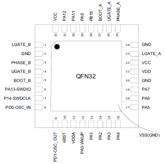 MM32SPIN120B內(nèi)嵌兩組具備有自舉二極管的N通道半橋柵極驅(qū)動器,提供QFN32封裝形式,適合于單相永磁無刷電機和快速無線充電等多種應(yīng)用場合。靈動微一級代理提供免費開發(fā)板測試及技術(shù)支持.