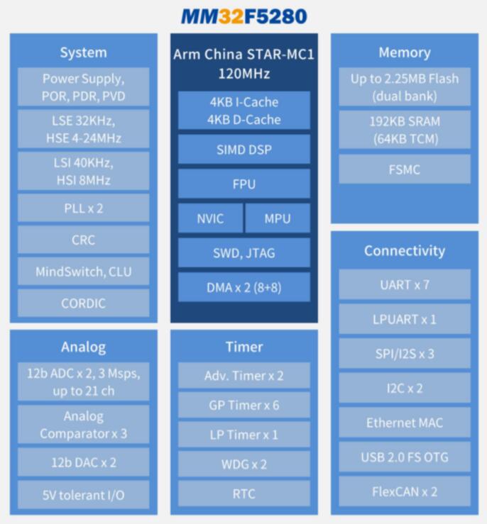 MM32F5280升級版的架構圖如下: