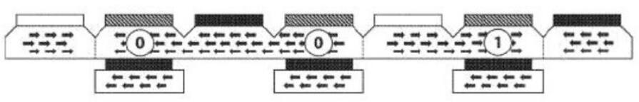 為了寫入單個(gè)位,電流通過存儲(chǔ)線,并且多鐵性元件和自由層的相互作用確定層之間的反平行極性為“ 1”(高電阻),層之間的平行極性為“ 0” (低電阻)。然后,通過減小存儲(chǔ)線和多鐵性元件之間的交換偏壓來更改存儲(chǔ)域的磁化強(qiáng)度(請(qǐng)參見上圖)。存儲(chǔ)器域是可獨(dú)立寫的,只需要一個(gè)電流輸入即可存儲(chǔ)數(shù)據(jù)。這大大降低了能耗和寫入周期所需的時(shí)間,從而提高了成本和性能效率。