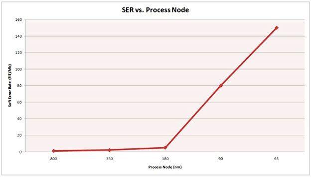 圖:SER:軟錯誤率;Process node:工藝節(jié)點(diǎn) soft:軟錯誤